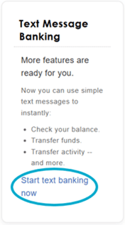 If you have not yet opted-in to text message alerts, but you would like to set up text message banking....