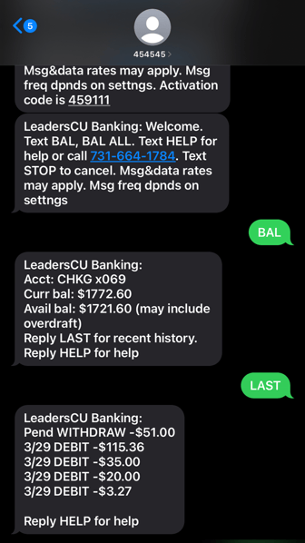 Congrats! You've successfully set up text message banking.