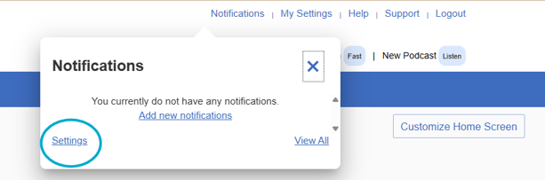 Click "Settings" when the notification modal appears.