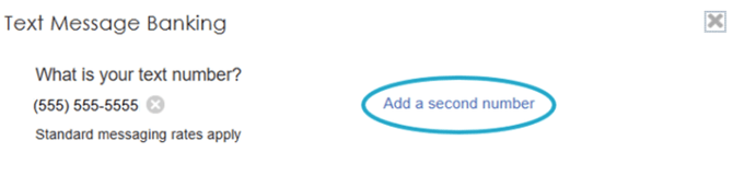If you wish to enter another phone number that can access text message banking for your accounts, enter the additional number by clicking "Add a second number" and accepting the Mobile Verification Agreement again for the new number.
