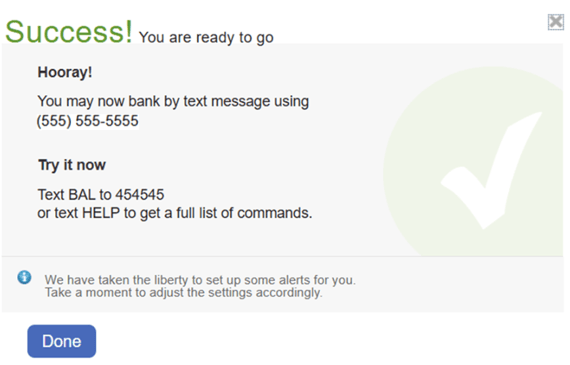 Congrats! You've successfully set up text message banking and alerts.